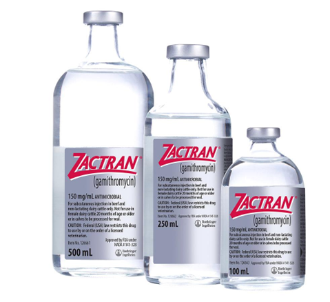 ZACTRAN is indicated for the treatment of bovine respiratory disease (BRD) associated with Mannheimia haemolytica, Pasteurella multocida, Histophilus somni and Mycoplasma bovis in beef and non-lactating dairy cattle. ZACTRAN is also indicated for the control of respiratory disease in beef and non-lactating dairy cattle at high risk of developing BRD associated with Mannheimia haemolytica and Pasteurella multocida.