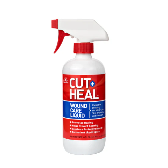 Cut-Heal® Wound Care seals, cleans, and aids in the natural healing of cuts, burns, and abrasions. The unique formula of balsam of fir, linseed oil, and fish oil helps prevent scarring, and provides a protective barrier against insects, moisture, and dirt. For uses on horses & dogs.